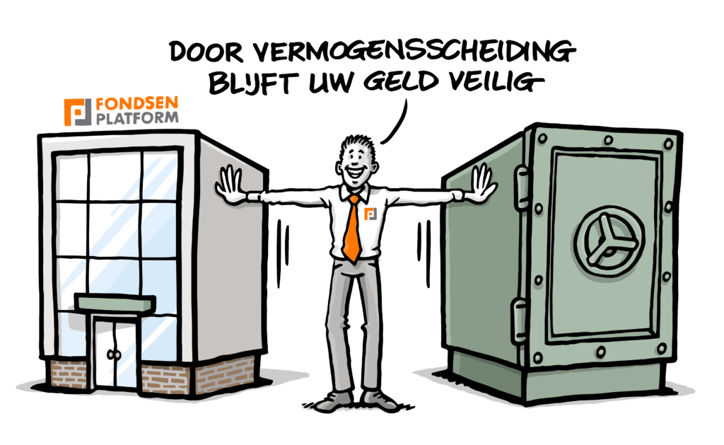 U wilt dat uw vermogen beschermd is tegen faillissementrisico’s. Uw vermogen wordt aangehouden op een rekening van Stichting Noordnederlandse Beleggersgiro, zie https://www.stichtingnoordnederlandsebeleggersgiro.nl. Hiermee is uw vermogen afgescheiden van de commerciële activiteiten van Fondsenplatform.